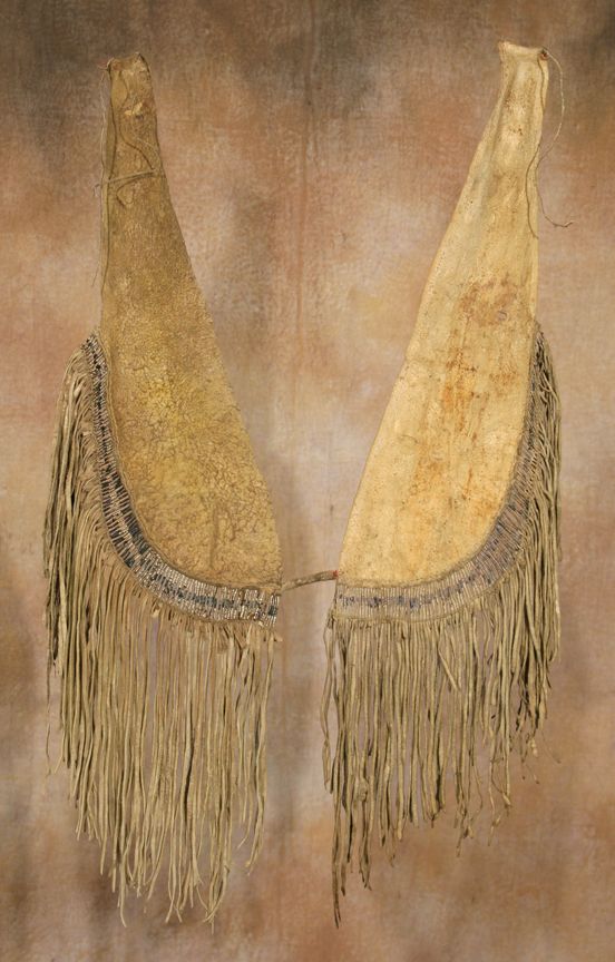 Cree Horse Crupper. 23" long with 14" tassels. Constructed in two hide panels decorated with dyed quillwork. Remnants of a red silk border. Trimmed with a broad band of quill-wrapped fringe. Mid 19th century. Rare! Condition reports can be viewed at www.marchinmontana.com/docs/2013CR.pdf