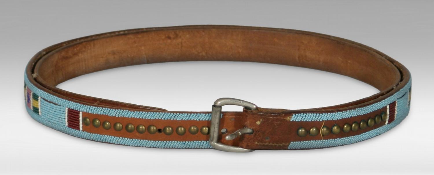 Crow Beaded Belt. Panel style, classic colors. 1 ¼" wide. (est $800-1,200) Condition Report: Excellent condition. Beadwork is good and tight