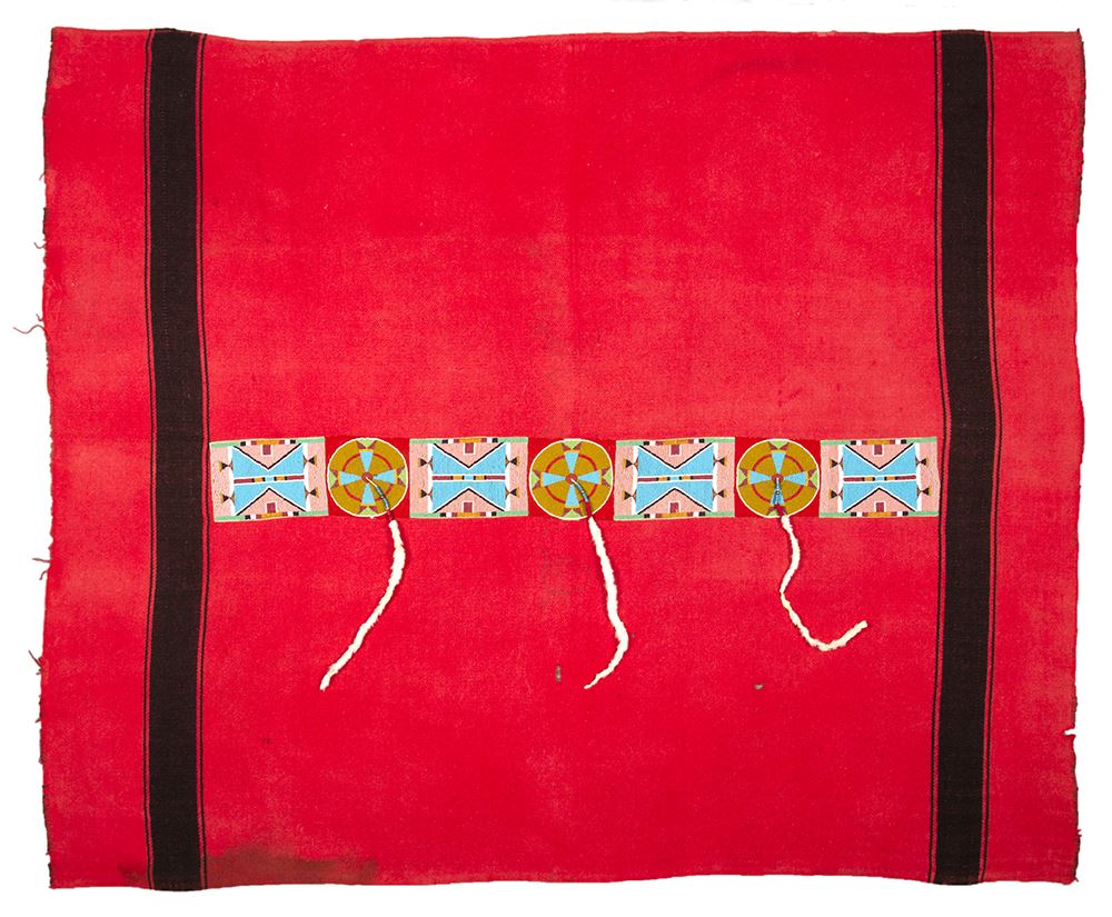 Crow Indian Trade Blanket. 6' x 4' 3" Wool blanket with fabulous 4' 3" x 6" beaded strip decorated with trade beads and three ermine drops. Circa 1900.