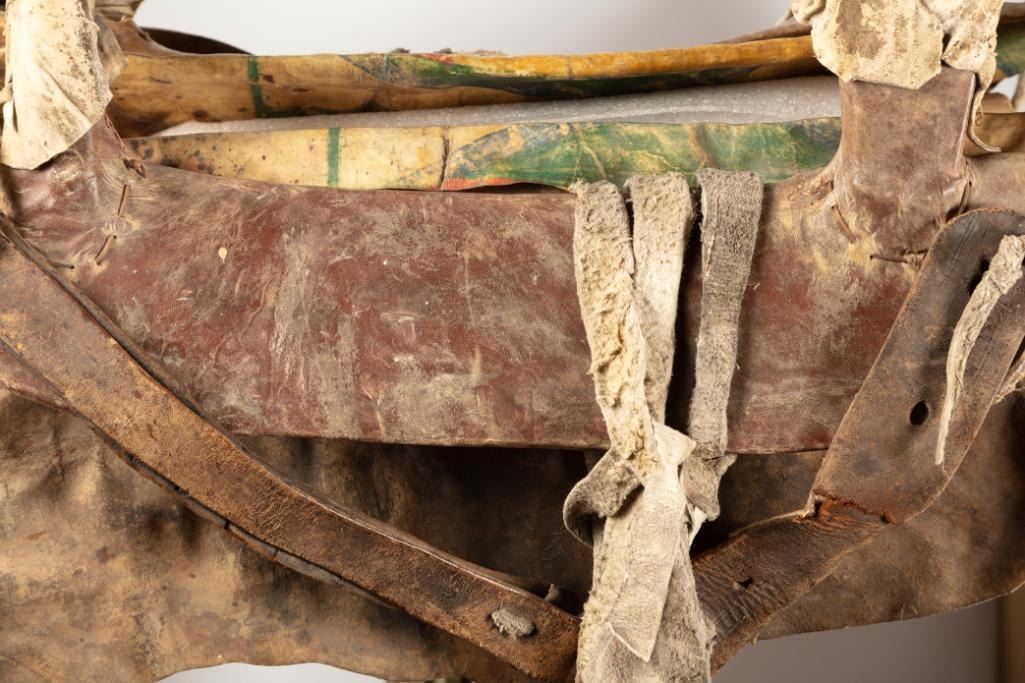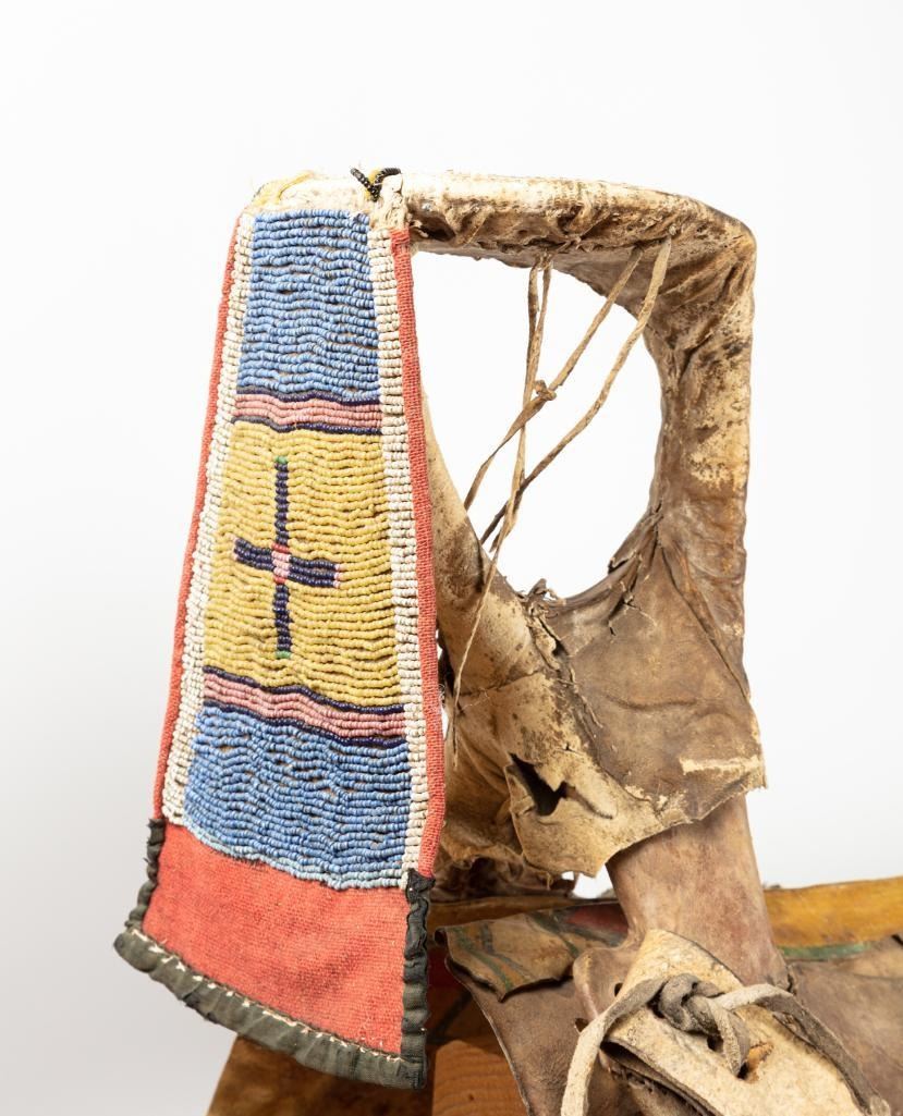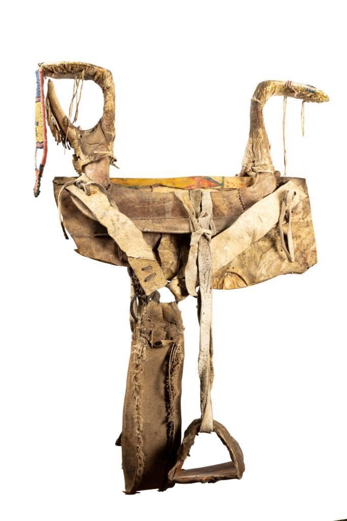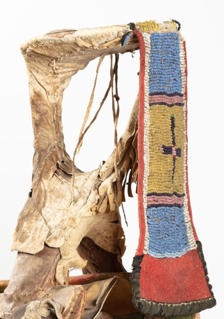 11" seat with buffalo stirrup leathers, parfleche underside and 10" x 5" beaded drop.