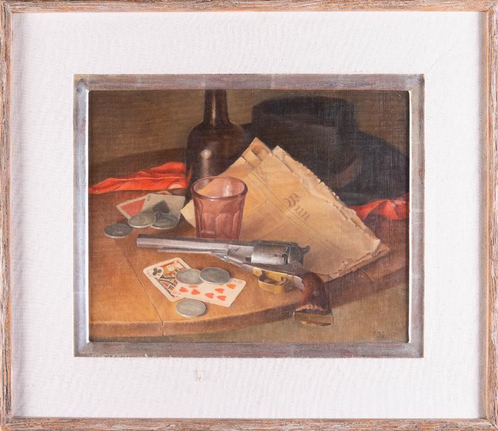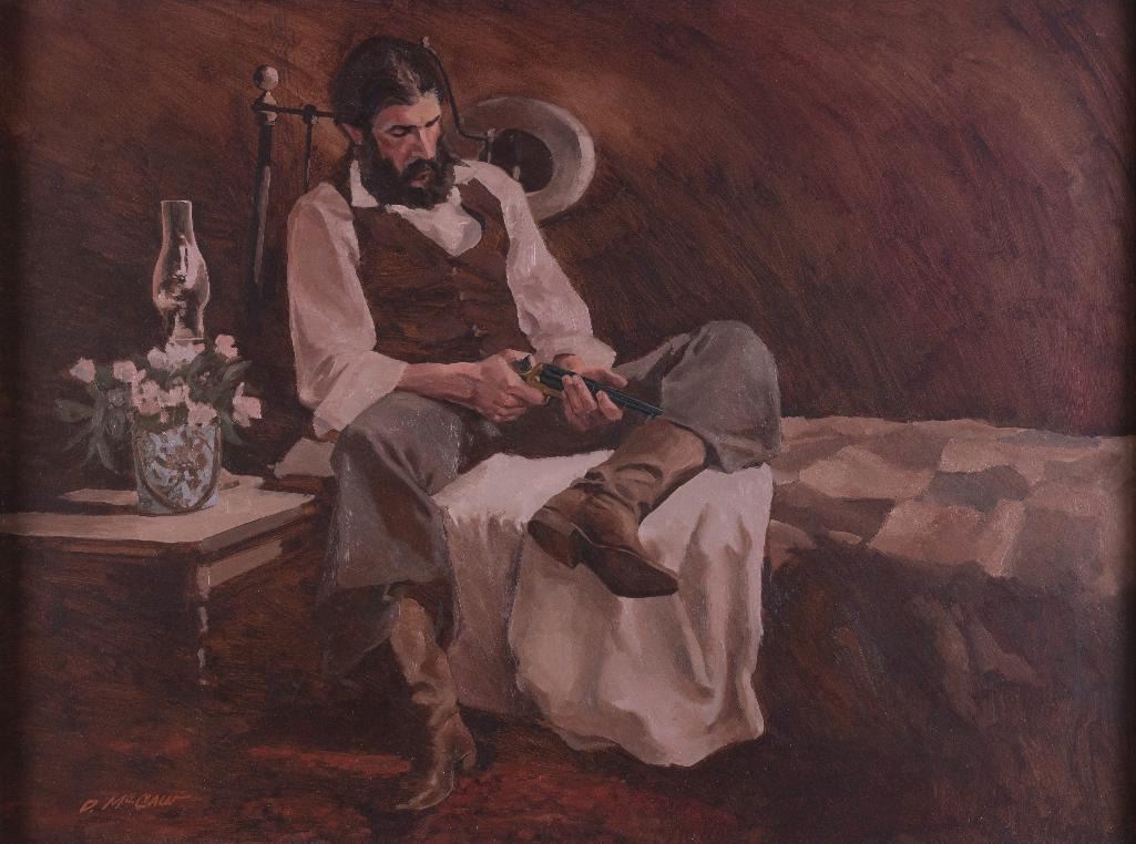 Two Works: 1) Dan McCaw (1942 - ) Before the Showdown 18" x 24" oil on board Signed lower left 2) F.B. Scott (1919-2011) Black Jack 12" x 16" oil on canvasboard Signed lower right $1,500-2,500