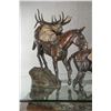 Five-piece glass and bronze coffee table on custom walnut base. Overall dimensions: 24" x 59" x 31". Inscribed: SOUTHFORK CROSSING DANIEL PARKER 38/75.