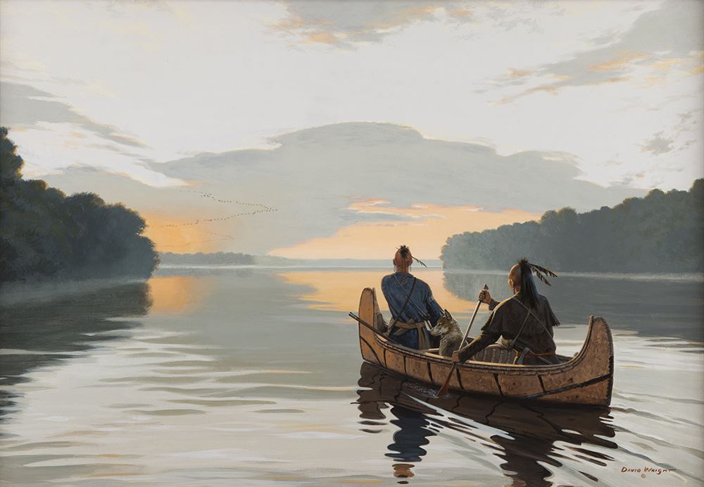 David Wright (1942 - ). Shawnee Dawn. 21" x 30" oil on board. Signed lower right.