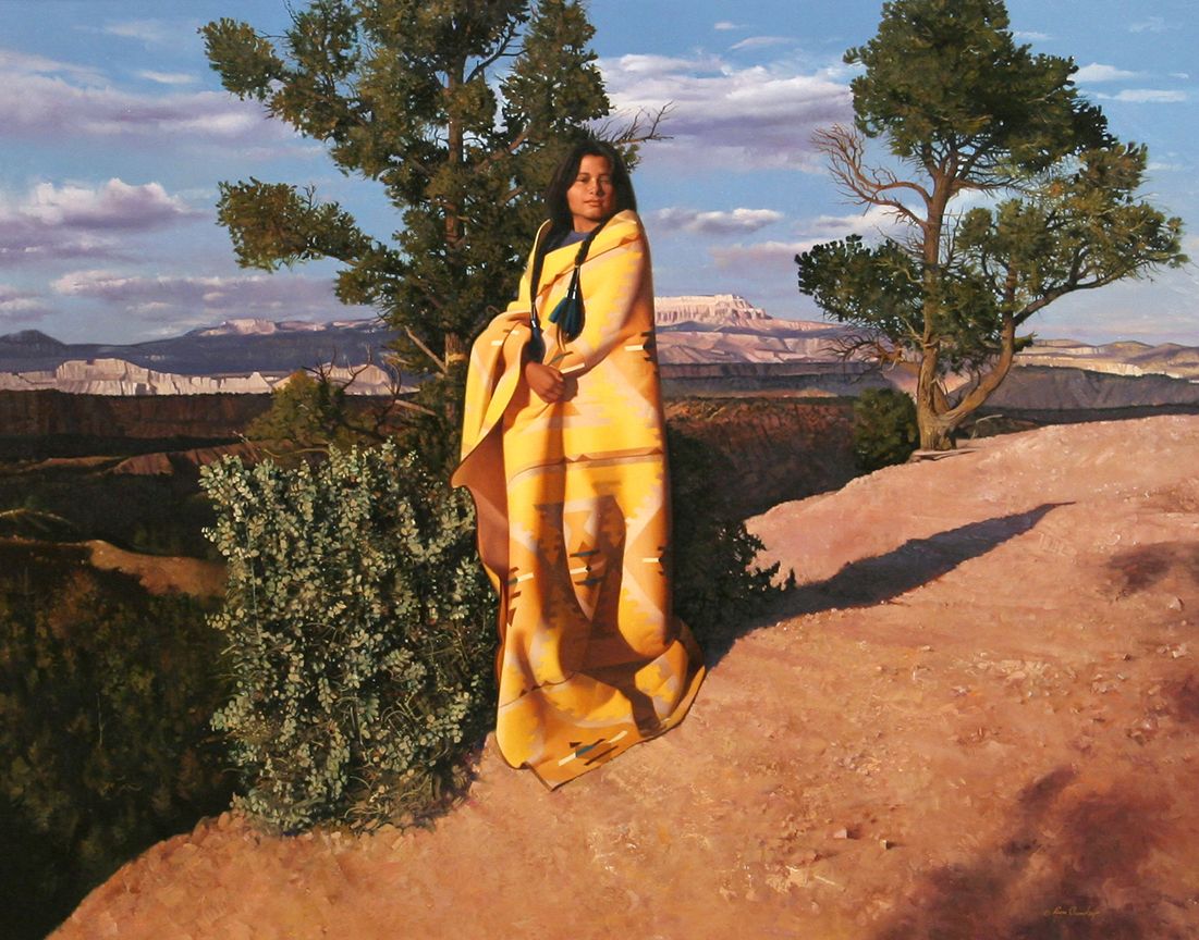 Don Crowley (1926 - ). Her Country. 24" x 30" oil on board. Signed lower right: © Don Crowley. Dated 1984 verso. Condition reports can be viewed at www.marchinmontana.com/docs/2013CR.pdf