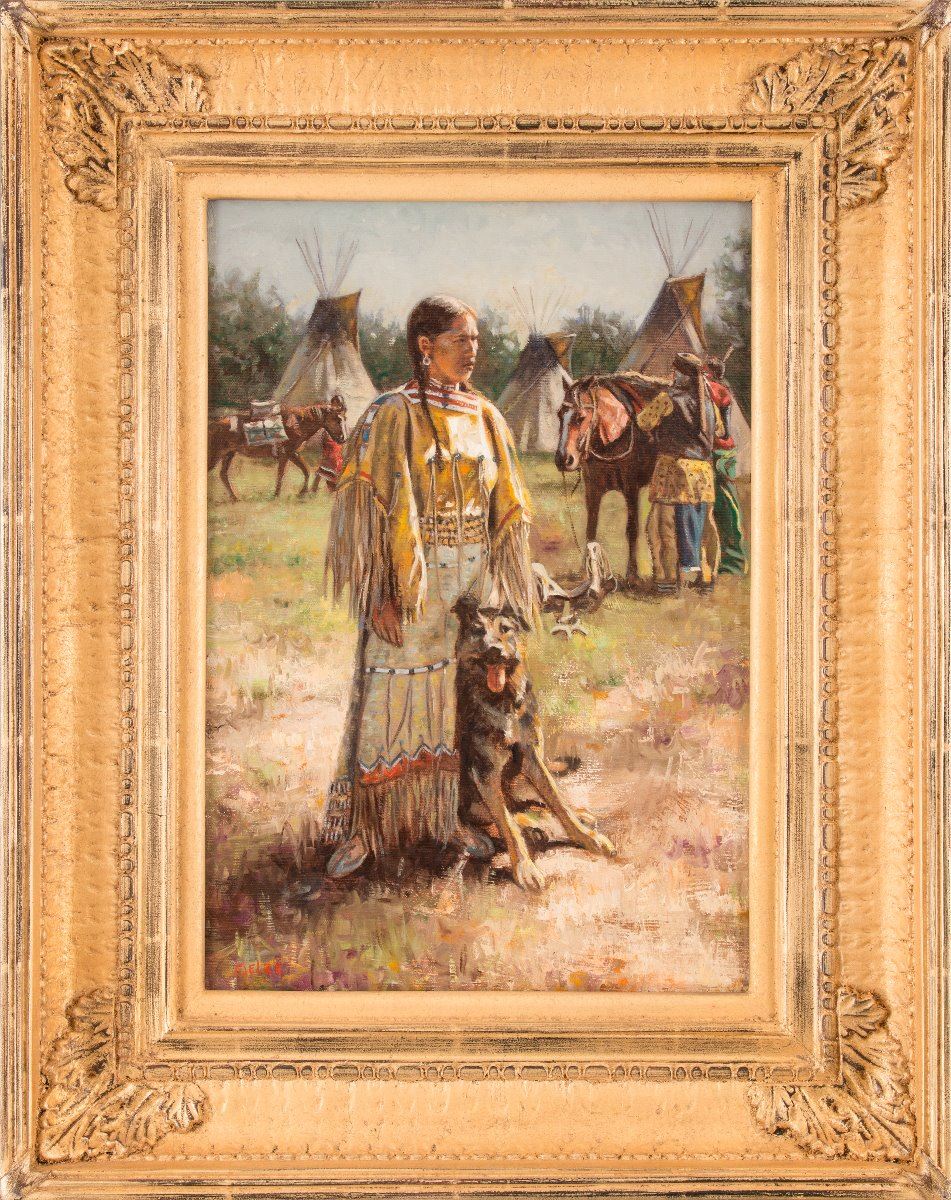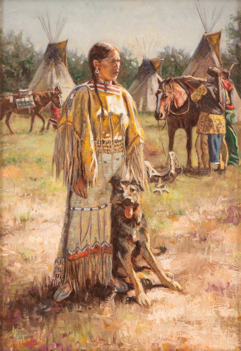 Don Oelze (1965 - ). Cheyenne Woman. 20" x 14" oil on canvas. Signed lower left.