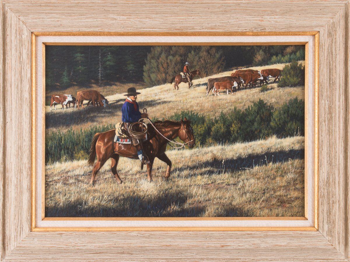 Duward Campbell (1951 - )(AICA). Summer Pasture. 20" x 30" oil on canvas. Signed lower right, AICA. Verso: Titled, signed and dated 1997.