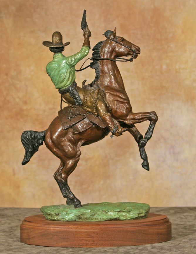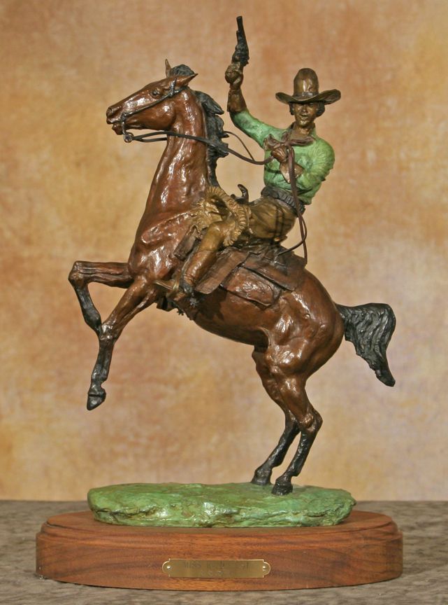Earle E. Heikka (1910 - 1941). Miss Wild West. 14.5" x 9.5" x 5" bronze. Inscribed: E. E. Heikka 1940. Marked: © V. K. NELSON 1970 20/35. Condition reports can be viewed at www.marchinmontana.com/docs/2013CR.pdf