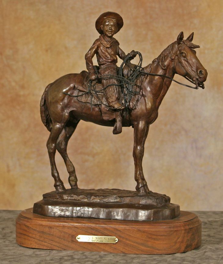 Earle E. Heikka (1910 - 1941). When I Was A Kid. 12.5" x 11" x 4" bronze. Inscribed: E. E. HEIKA. Marked: © REX BRENEMEN 1978 A/C. Condition reports can be viewed at www.marchinmontana.com/docs/2013CR.pdf