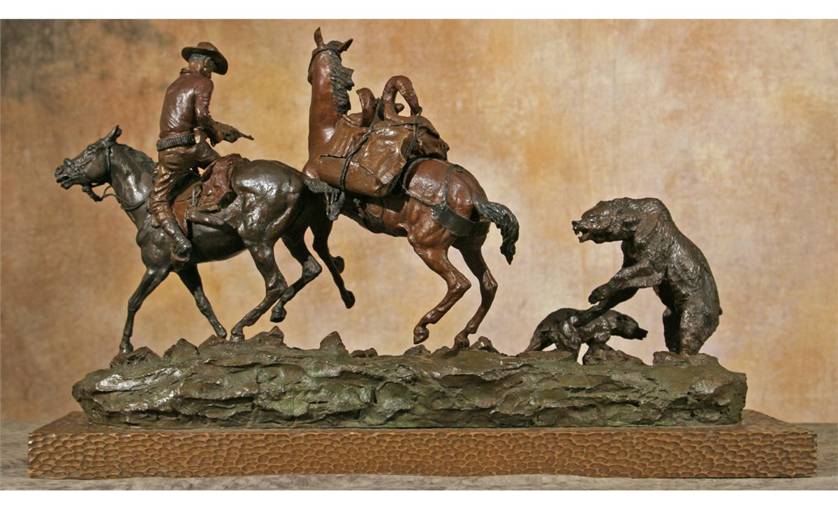 Earle E. Heikka (1910 - 1941). Unexpected. 15.5" x 25" x 7" bronze. Inscribed: E. E. Heikka -39. Marked: JHM CLASSIC BRONZE, © ALVIN P. ADAMS 1973 8/36 Condition reports can be viewed at www.marchinmontana.com/docs/2013CR.pdf