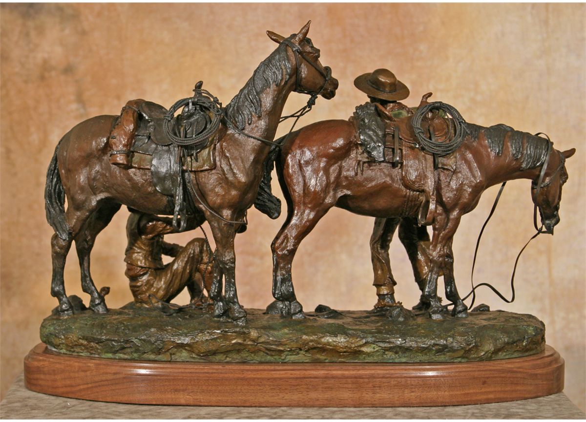Earle E. Heikka (1910 - 1941). Goin' To Town. 13" x 21" x 10" bronze. Inscribed: E. E. Heika 1938. Marked: JHM CLASSIC BRONZE, © ALVIN P. ADAMS 1974 3/36. Condition reports can be viewed at www.marchinmontana.com/docs/2013CR.pdf