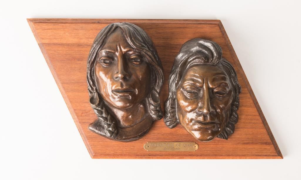 Earle E. Heikka (1910-1941) Blackfoot Buck Squaw 6" x 8" x 1.75" wall mount bronze Inscribed: E.E. Heikka, '41(C) Mont., 27/110 Together with: Charles A. Beil (1894-1976) Saddled Horse 4" x 6" x 4" bronze Inscribed: CA Beil, 29/48 $1,000-1,500