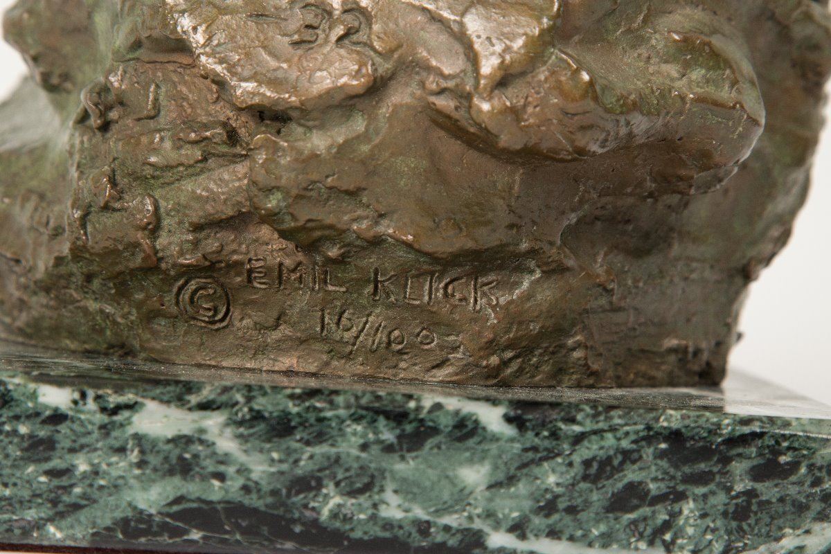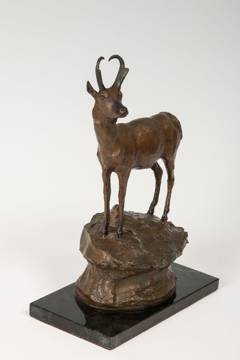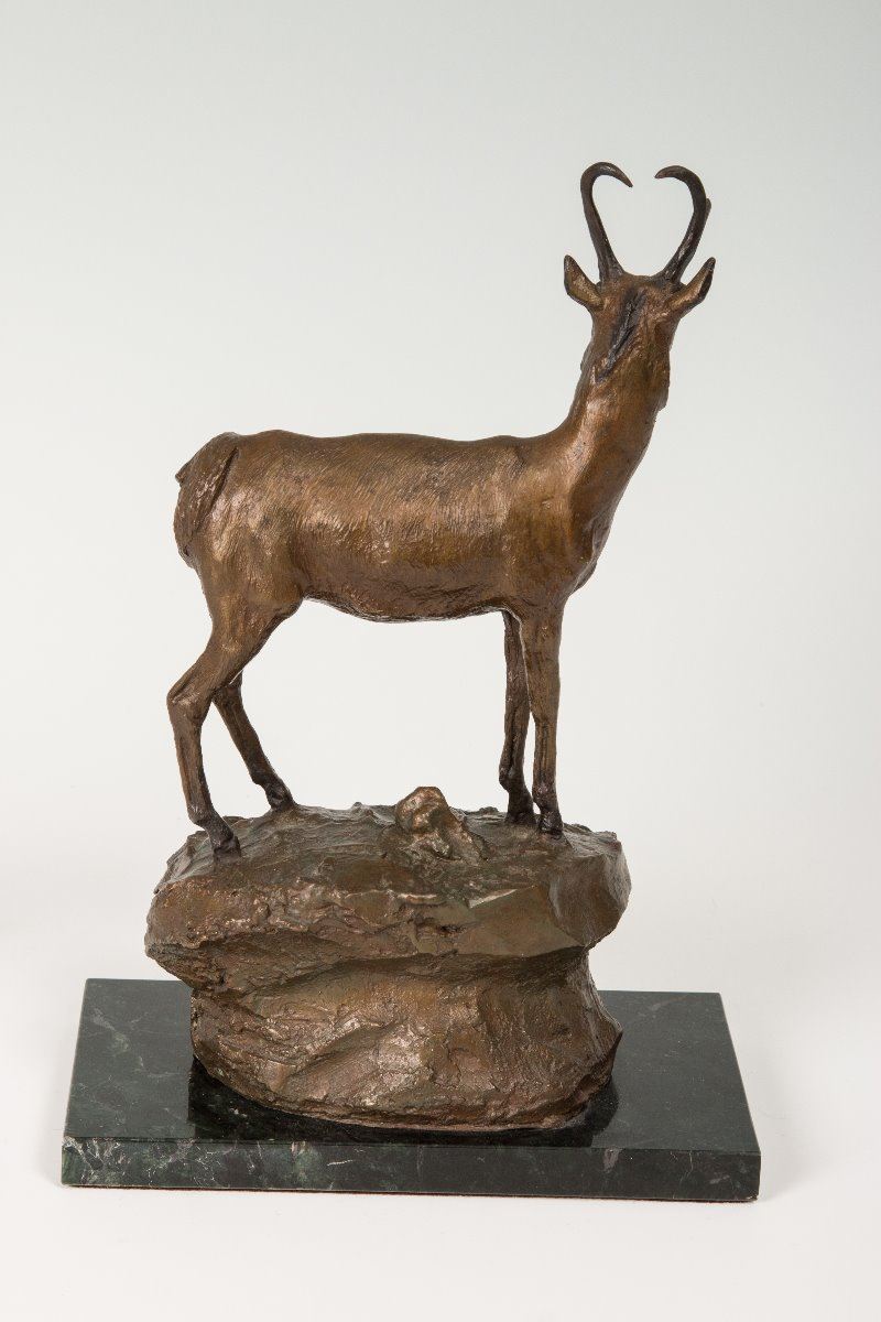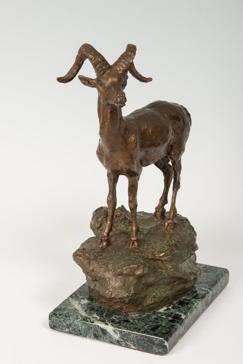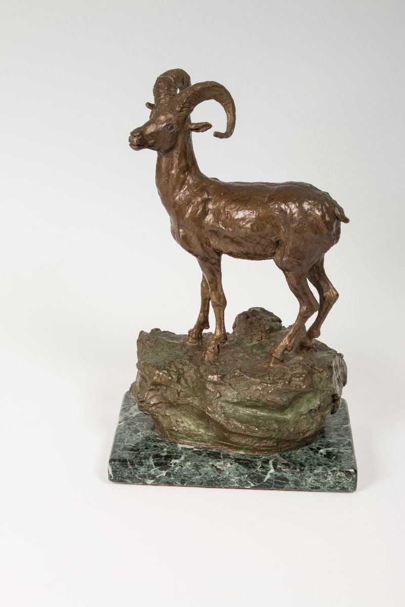 Earle E. Heikka (1910-1941). Two bronzes: 1) Mountain Ram. 10 ½" x 4 ½" x 6 ¼" bronze on marble base. Inscribed: Heikka, -32-. 2) Silent Sentinel. 9 ¾" x 3 ¾" x 5" bronze on marble base. Inscribed: Classic Bronze.