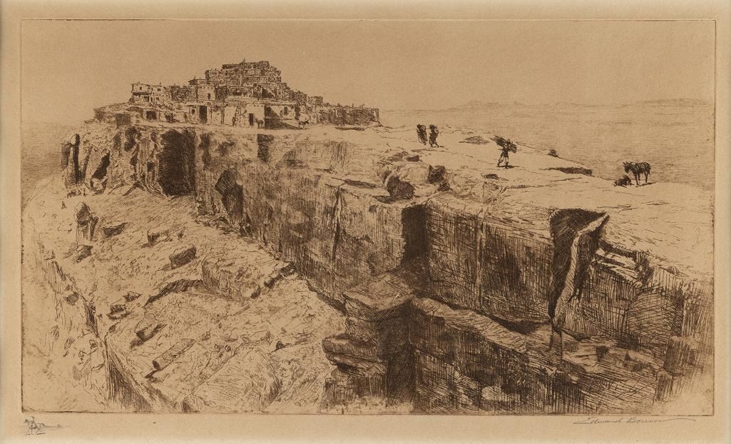 Edward Borein (1873-1945) Walpi 8" x 14" etching and drypoint Signed lower right, remarque lower left $1,000-1,500 Provenance: Collectors Notes. Collector Bill Brandt, a proud Montanan, born and raised in Great Falls, MT.
