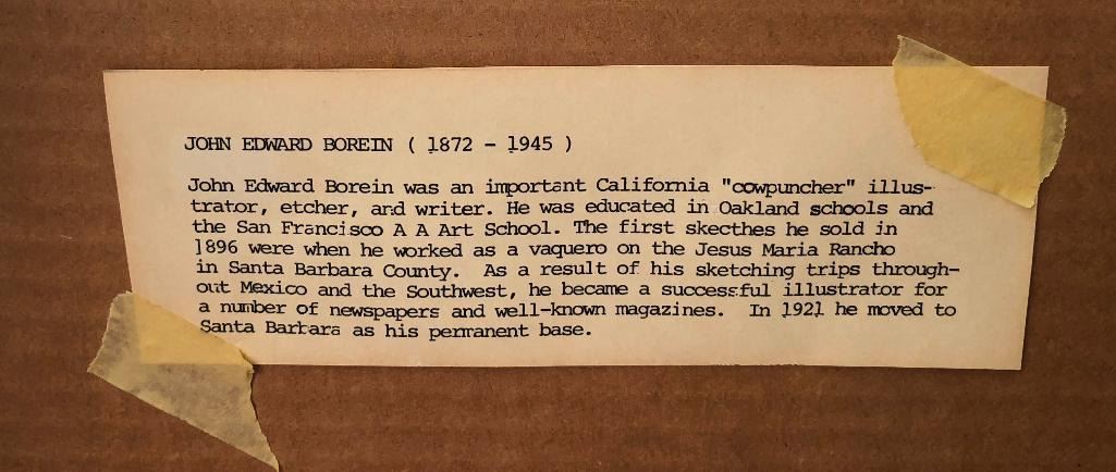 Edward Borein (1872-1945) The Ranahans 8.75" x 12 9/16" etching, Galvin Plate 32 Original pencil signature lower right $2,500-3,500 Provenance: Ex. J.B. Gulbranson Collection, California.