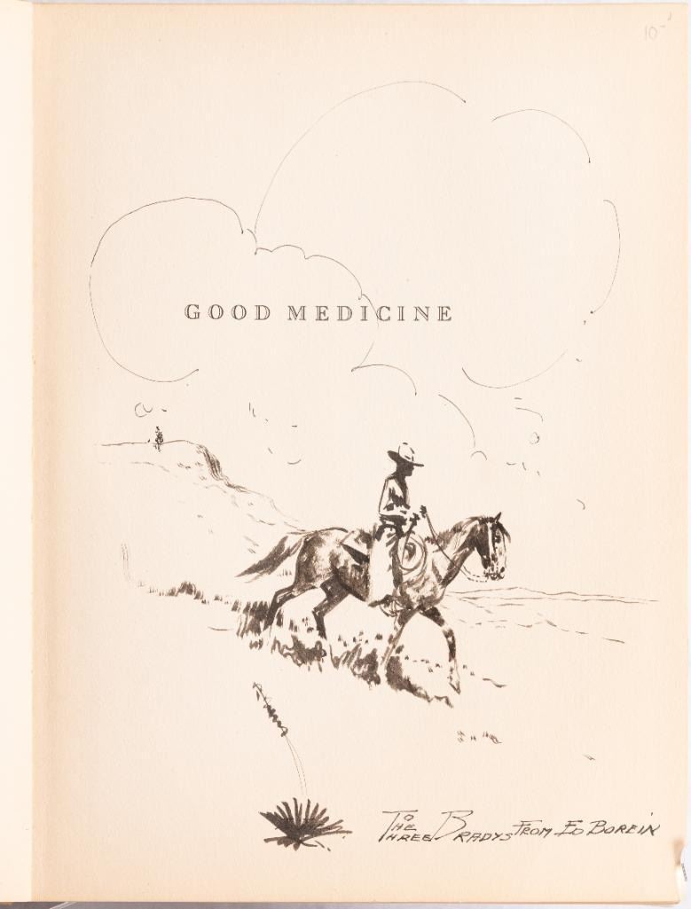 Edward Borein (1872-1945) Lone Rider 12" x 9" ink Signed lower right $1,500-2,500 Provenance: The drawing is featured on the title page of the book Good Medicine by Charles M. Russell.