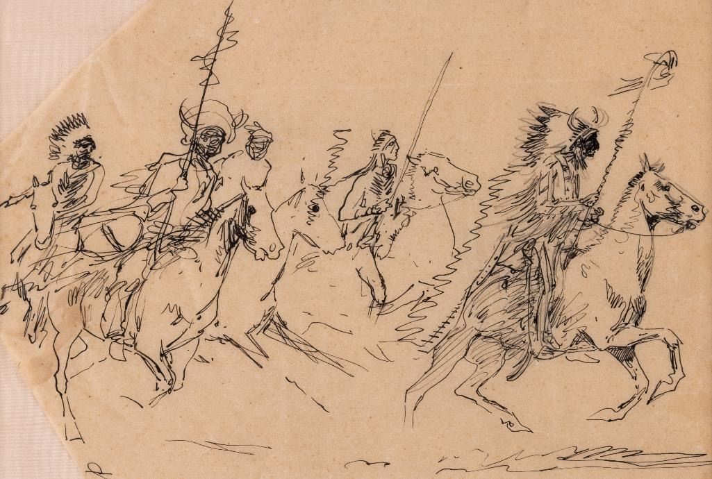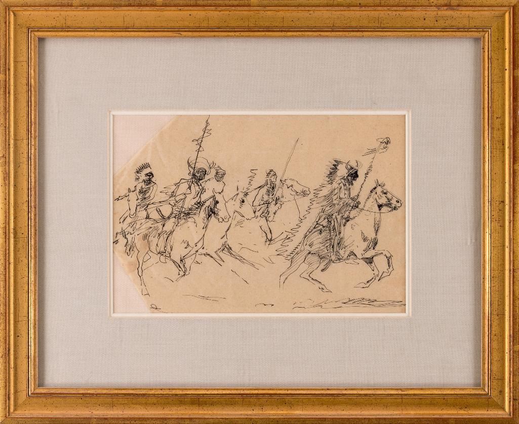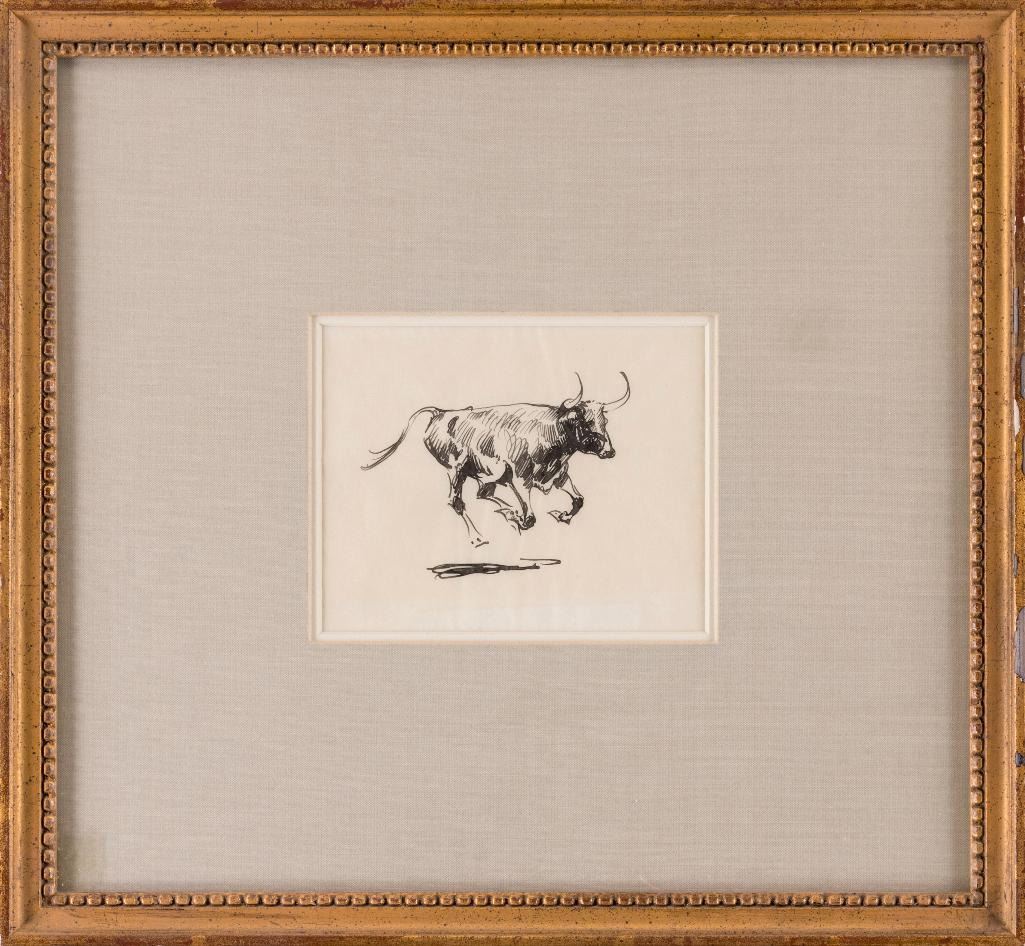 Edward Borein (1872-1945) Two works: 1) Indian Sketch 7.5" x 10.75" sketch Unsigned Verso: Letter from Harold G. Davidson, dated 9/30/65 stating that it is an original Borein sketch, which was one of many obtained from Borein's widow in Santa Barbara, CA. 2) Longhorn Steer 4.5" x 5.5" pen and ink Unsigned $1,200-1,800 Provenance: Ex Bokelman Collection.