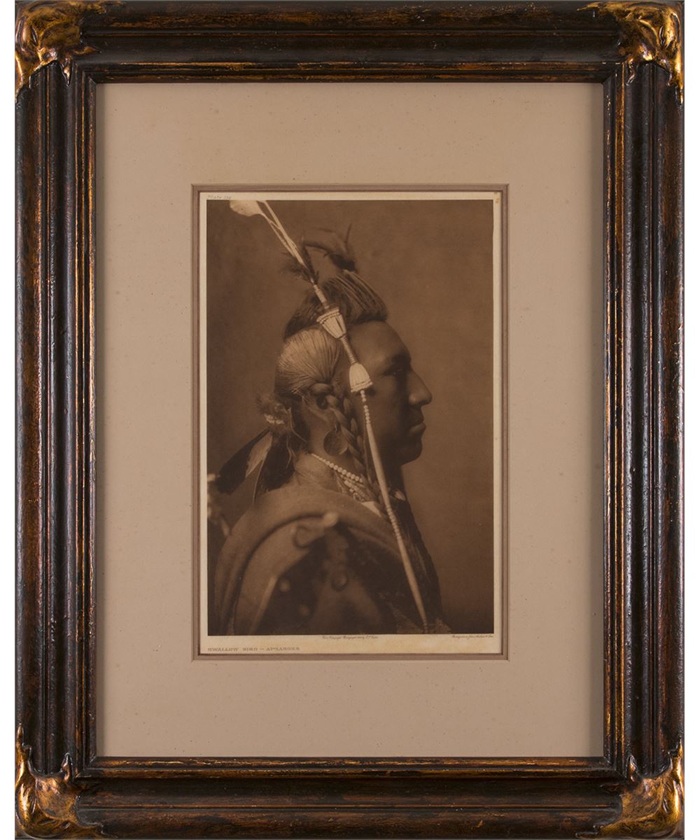 Edward S. Curtis (1868-1952). Swallow Bird- Apsaroke, Plate 134. 15 ¾" x 10 ?" photogravure. From copyright photograph 1908 by E. S. Curtis.