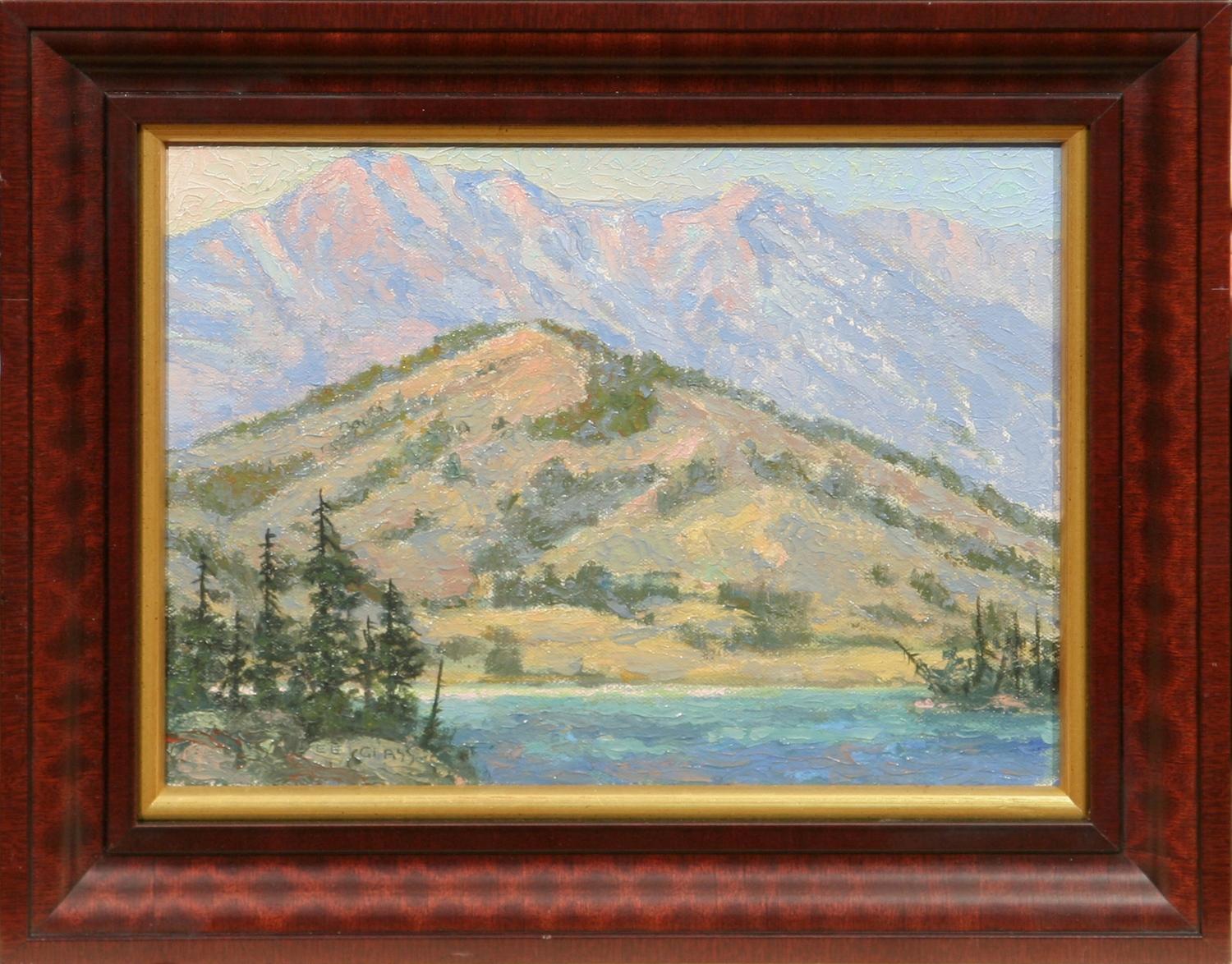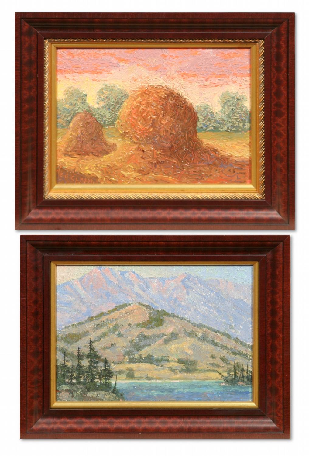 Emerson Everett Glass (1916-1987). Pair of oils on board. (1) Hay Bales.(2) Sugar Loaf Lake - Last Light. Both 9" x 12". Both signed lower left. (est $2,000-3,000) Condition Report: Black lights clean. Both newly framed