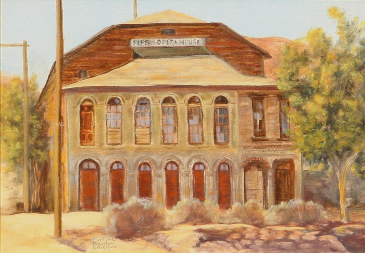 Evelyne Boynton Grierson (1904-1994). Two oils on board. (1) Pipers Opera House, Virginia City, NV. (2) Bank Of California, Gold Hill, Nevada. each 11" x 15". each signed lower right. (est $900-1,200) Condition Report: Both black light clean