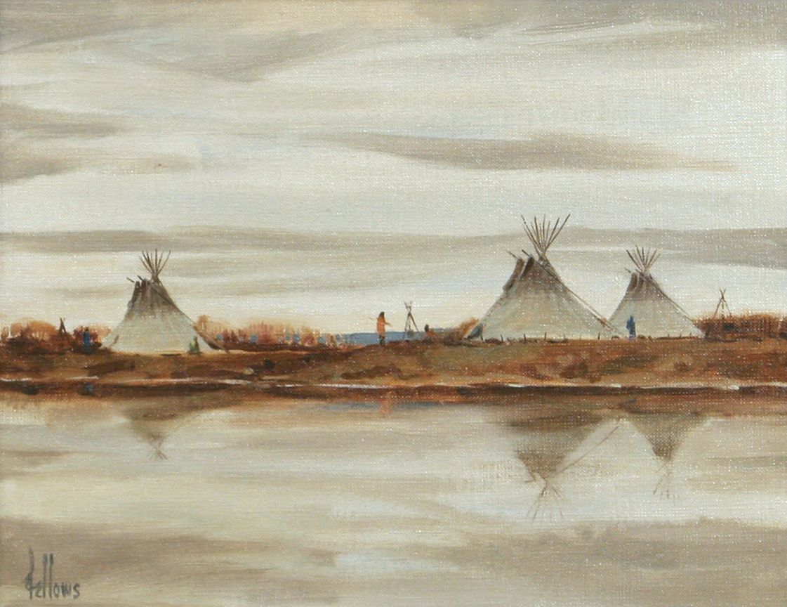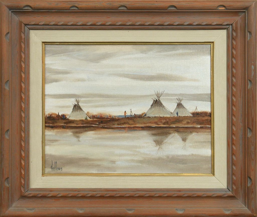Fred Fellows (1934 - ) CA. River Camp. 11" x 14" oil on canvas. Signed lower left: fellows. Condition reports can be viewed at www.marchinmontana.com/docs/2013CR.pdf
