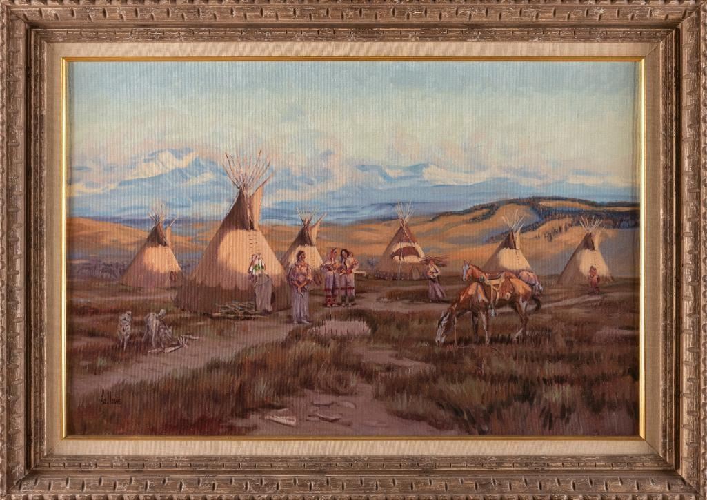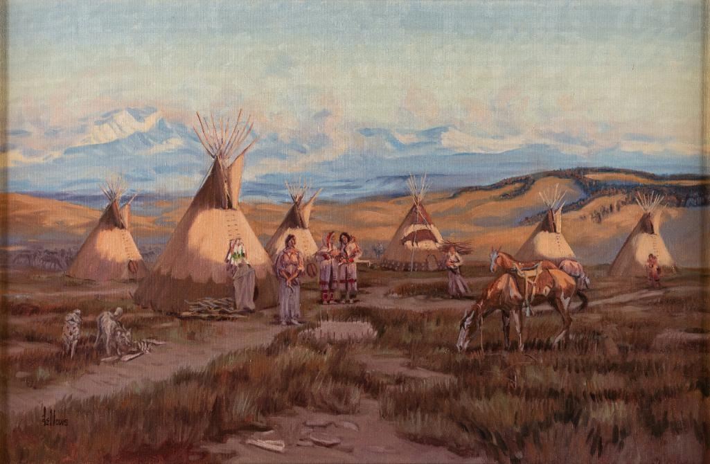 Fred Fellows (1934 - )(CA) Six Teepees 24" x 36" oil on canvas Signed lower left $4,000-6,000 Provenance: Private Collection, Whitefish, MT.