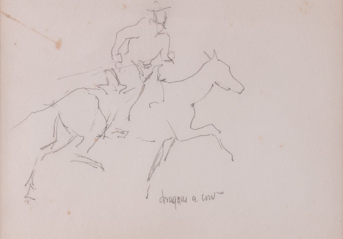 Frederic Remington (1861-1909). Draggin' a Cow. 9" x 11 ½" graphite on paper. Unsigned. Verso: Frederick Remington, Original, Field Sketch. Provenance: Certificate of Authentication. Remington gifted to F.G Cooper, New York, circa 1900. F.G Cooper's daughter by descent, present owner by descent.