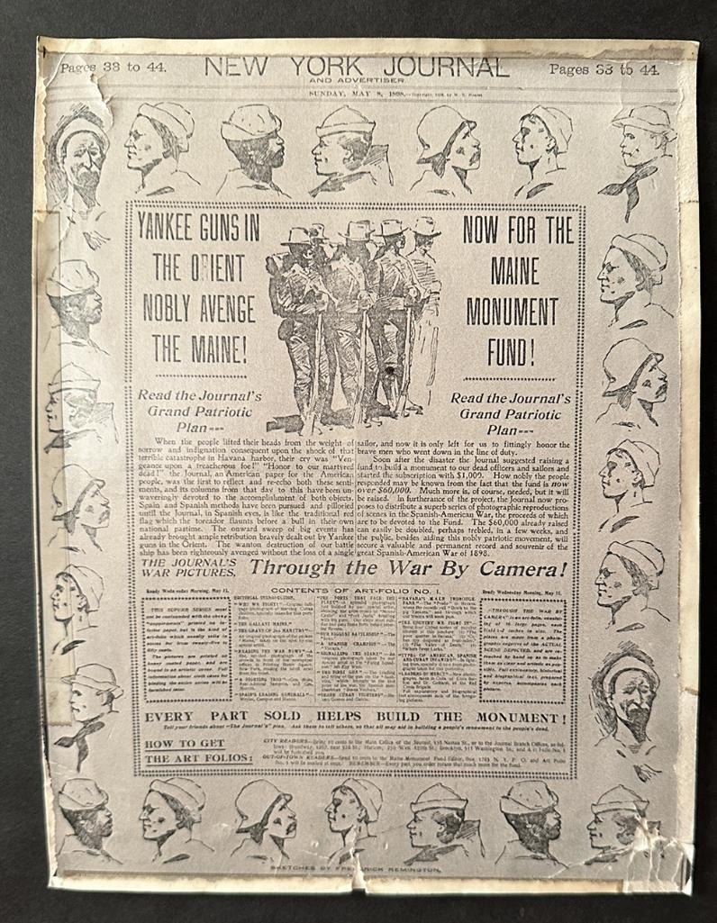 Verso: Mongerson Gallery sticker. Photo of the copy of the New York Journal, 1808 cover featuring the drawings bordering the entire front page.