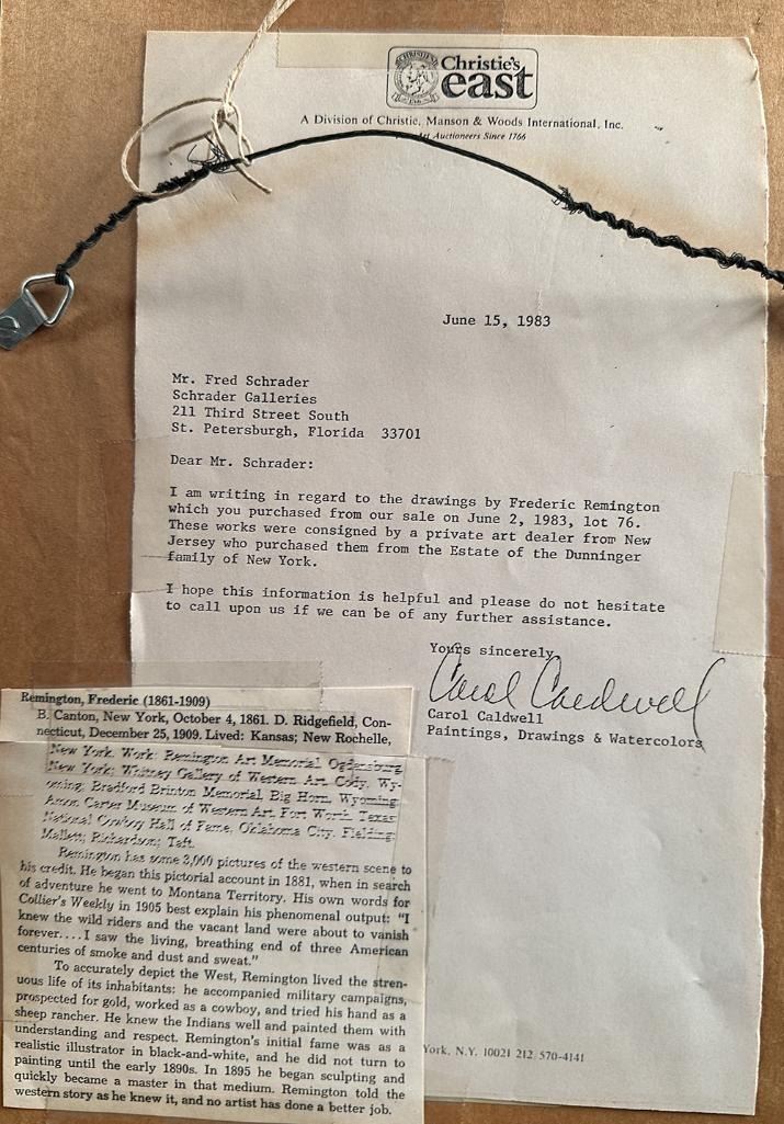 Verso: Signed letter from Christie's East. Artist biography.