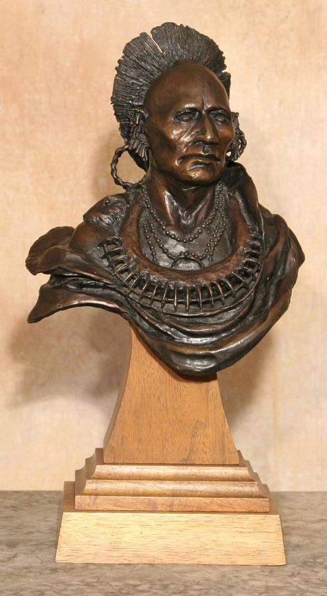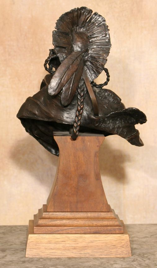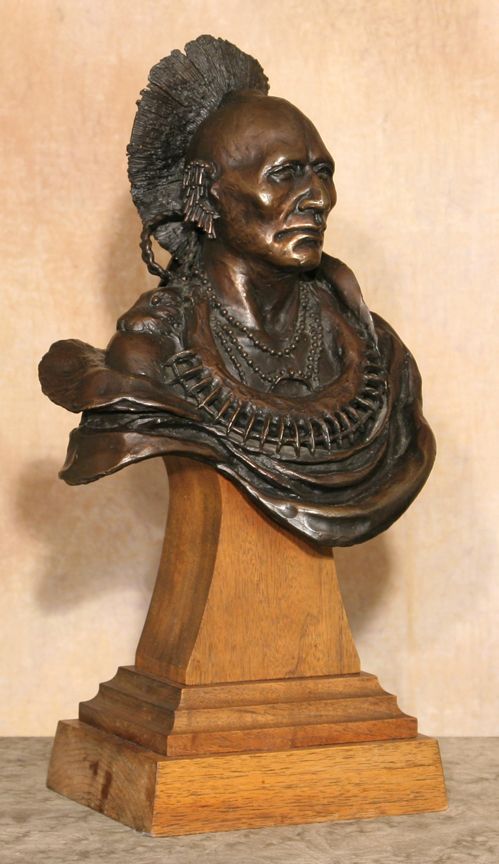 Fritz White (1930 - 2010) CA. Pawnee. 13" x 10" x 8" bronze. On 9" pedestal base. Inscribed © f white CA 13/24. Condition reports can be viewed at www.marchinmontana.com/docs/2013CR.pdf