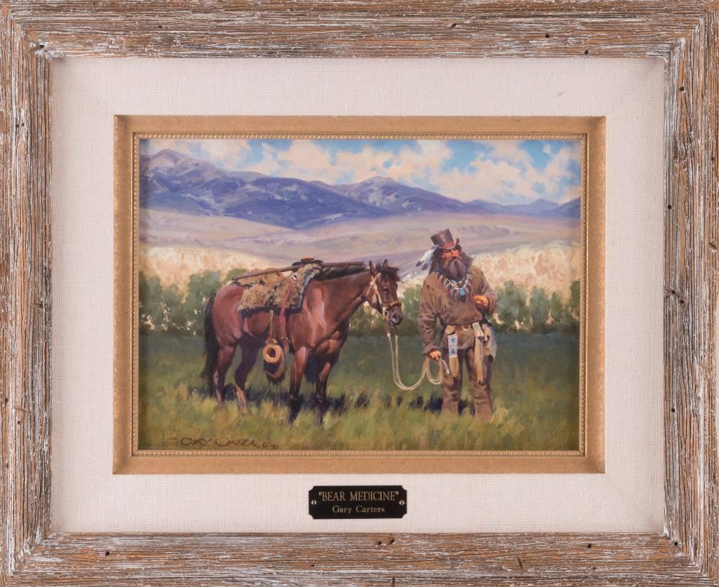 Gary Carter (1939 - )(CA) Bear Medicine 10" x 14" oil on board Signed lower left, CA Verso: Titled, signed and dated 1990. $1,000-2,000
