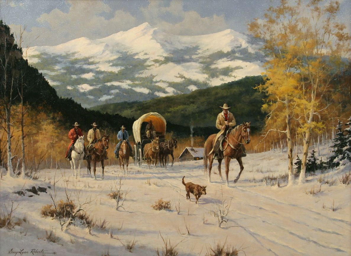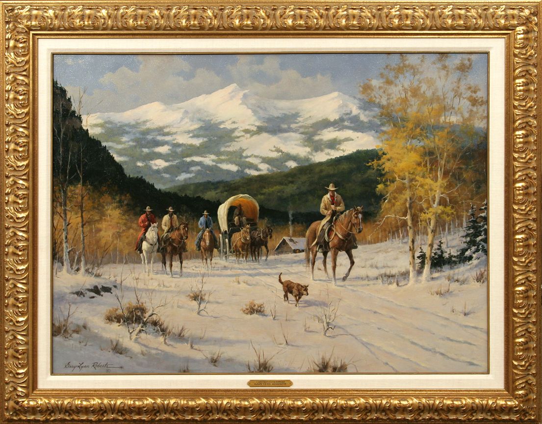Gary Lynn Roberts (1953 - ). Last Chance For Supplies. 30" x 40" oil on canvas. Signed lower left: Gary Lynn Roberts ©. Condition reports can be viewed at www.marchinmontana.com/docs/2013CR.pdf