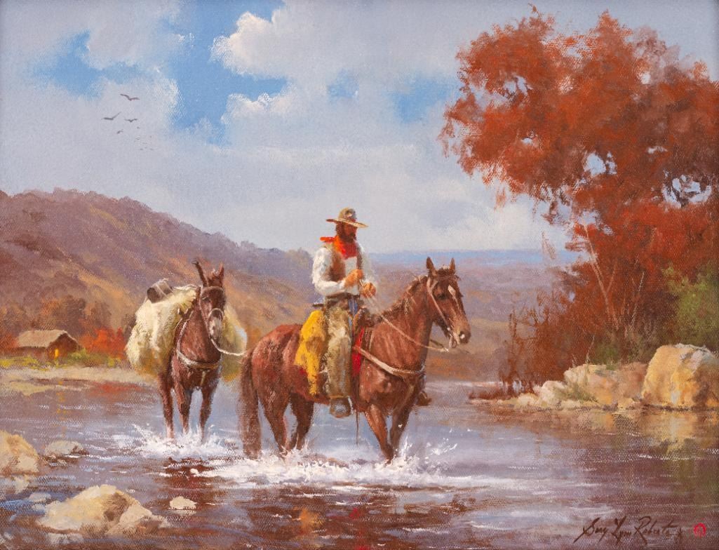 Gary Lynn Roberts (1953 - ) River Crossing 12" x 16" oil on canvas Signed lower right $2,000-3,000 Provenance: Private Collection, Dallas, TX.
