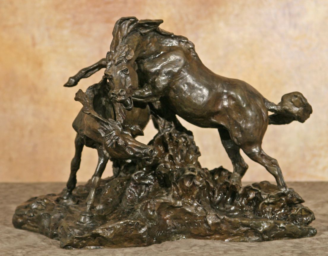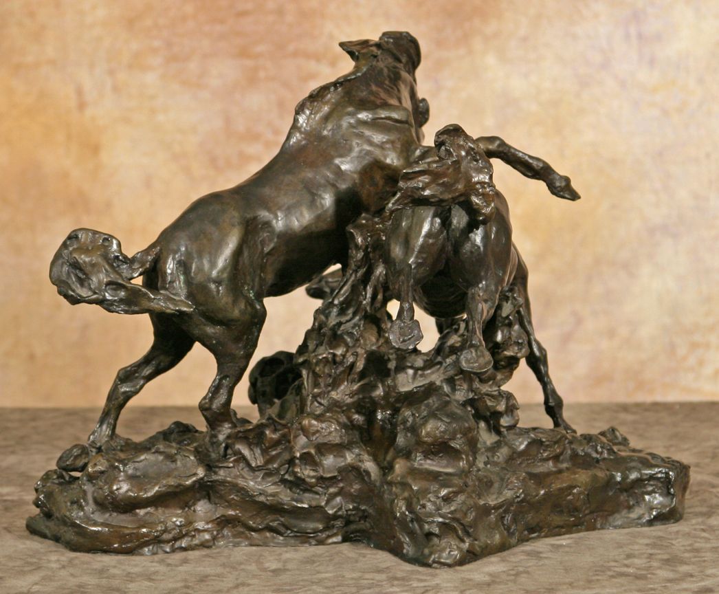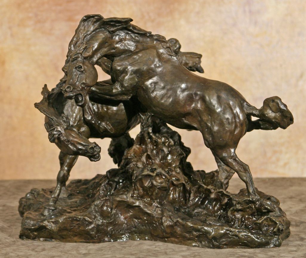 Gary Schildt (1938 - ). Fighting Stallions. 11.5" x 17" x 10" bronze. Inscribed: © 1966 G SHILDT. Condition reports can be viewed at www.marchinmontana.com/docs/2013CR.pdf