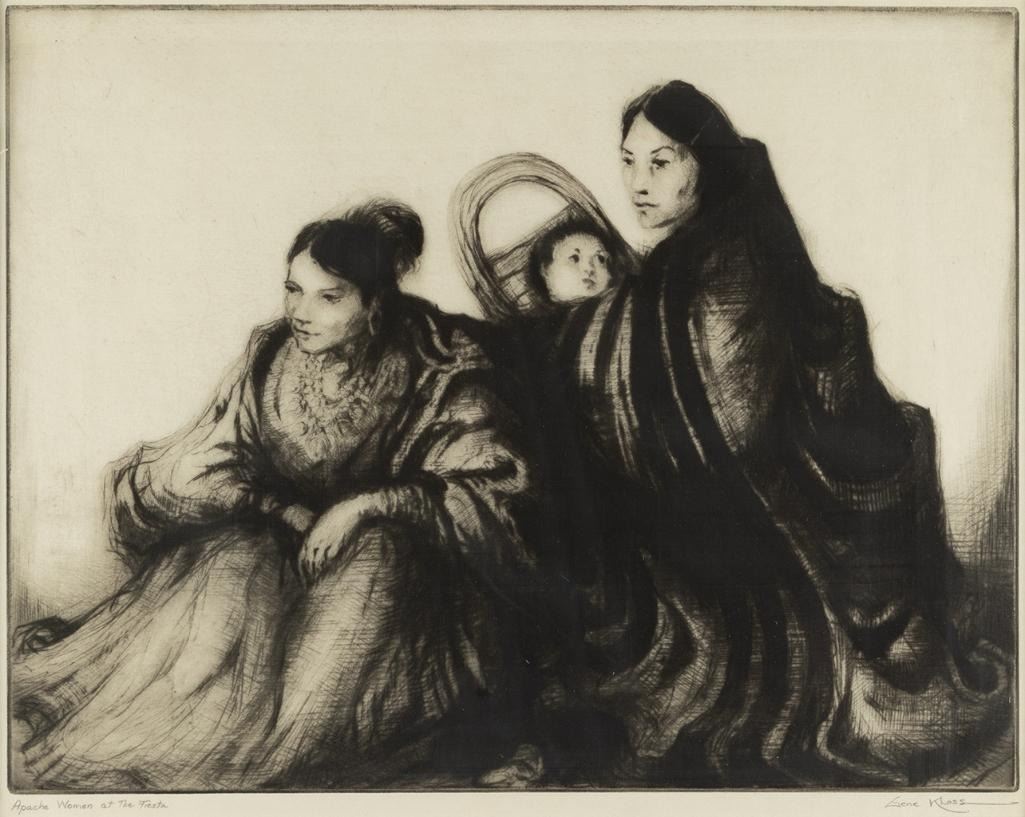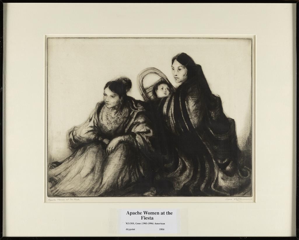 Gene Kloss (1903-1996) Apache Women at the Fiesta 11" x 14" drypoint Signed lower right, titled lower left $2,000-3,000 Provenance: Collectors Notes. Collector Bill Brandt, a proud Montanan, born and raised in Great Falls, MT.