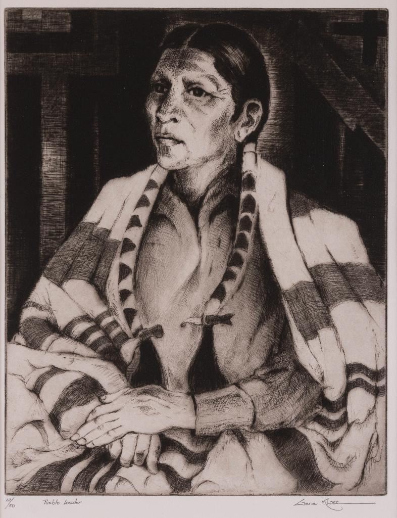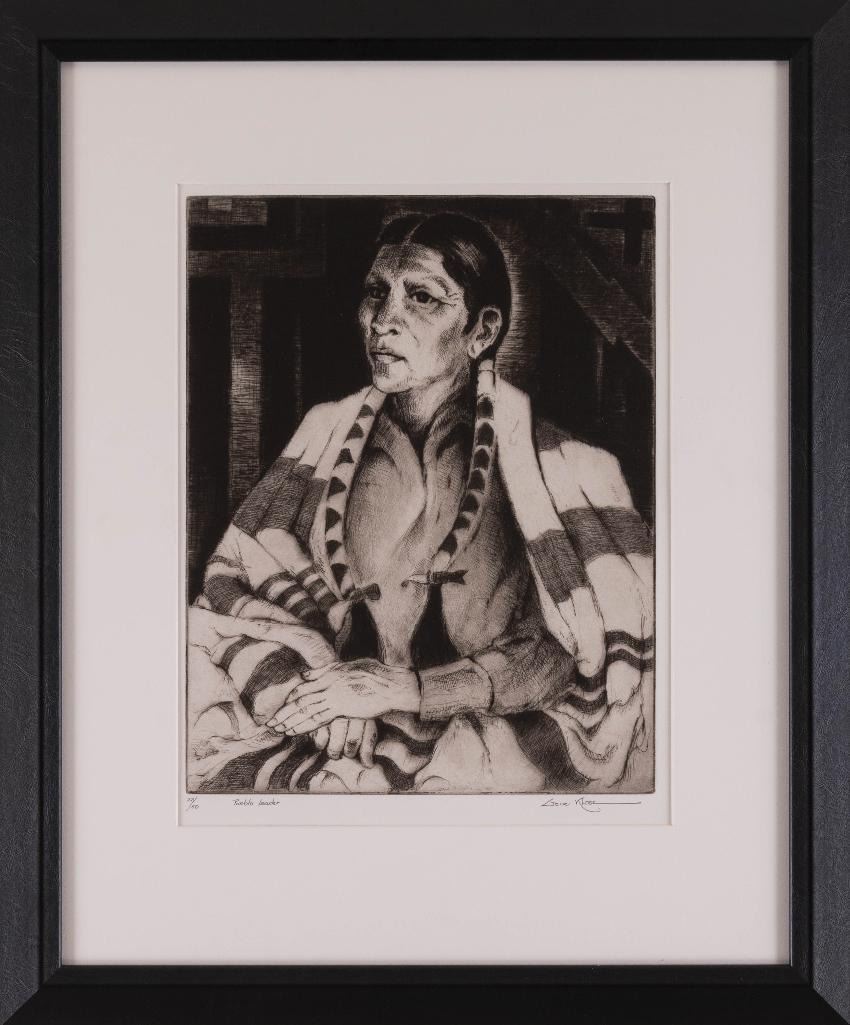 Gene Kloss (1903-1996) Pueblo Leader 14" x 11" etching and drypoint Numbered 22/50 and titled lower left, signed lower right $1,500-2,500 Provenance: Ex. J.B. Gulbranson Collection, California.