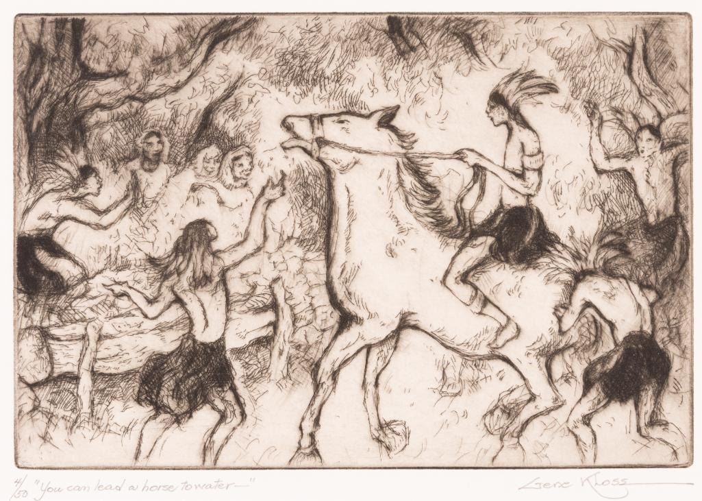 Gene Kloss (1903-1996) You Can Lead a Horse to Water... 6" x 9" etching Numbered 4/50 and titled lower left, signed lower right $1,000-2,000 Provenance: Ex. J.B. Gulbranson Collection, California.