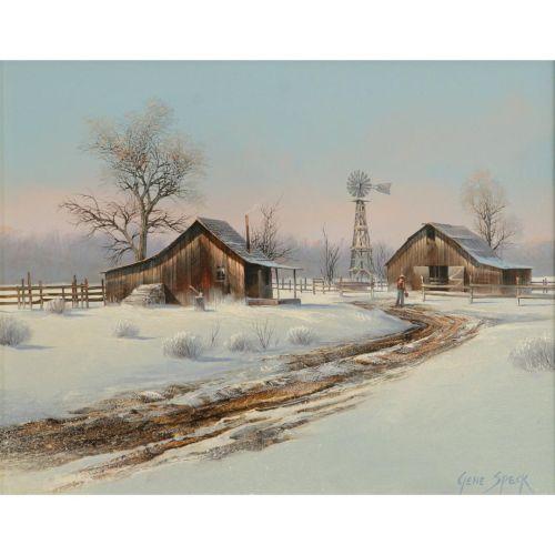 Gene Speck (b. 1937) Winter Morning, 7 ½” x 9 ½” oil on board, signed LR
