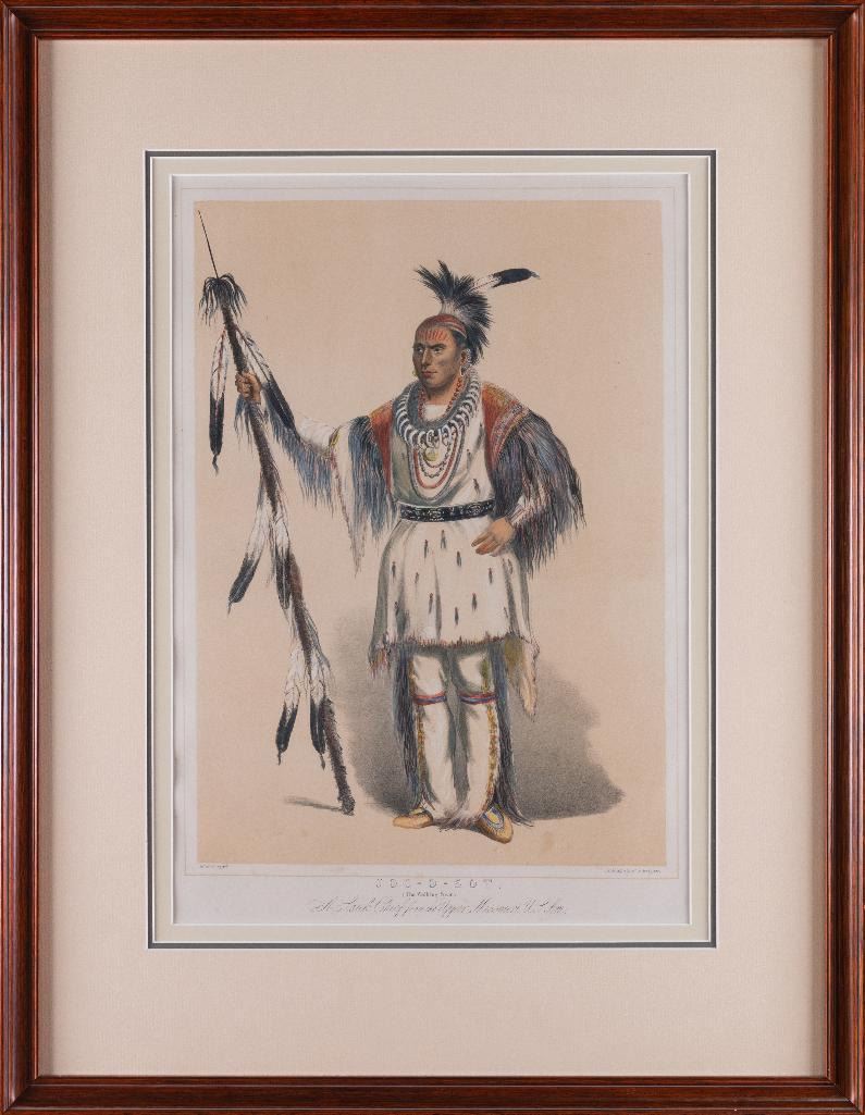 George Catlin (1796-1872) Joc-o-sot (The Walking Bear), A Sauk Chief from the Upper Missouri 16.25" x 11.5" hand-colored lithograph Published by Day and Haghe, London. Day and Hague Lith. to the Queen lower right. $4,000-6,000 Provenance: Private Collection, Minnesota.
