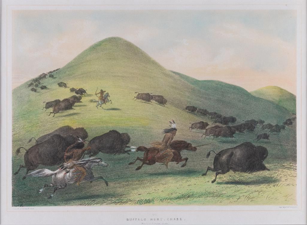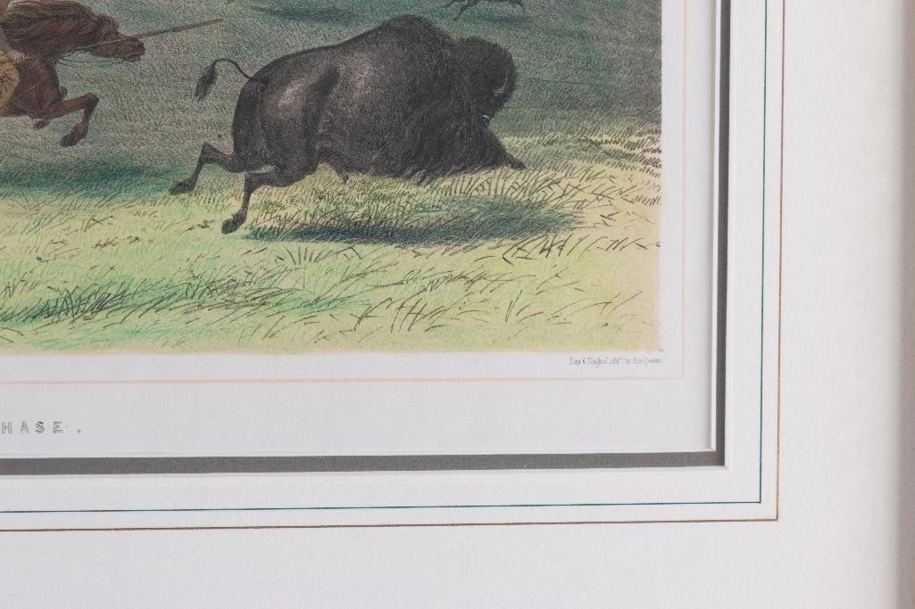 George Catlin (1796-1872) Buffalo Hunt, Chasing Plate No. 6 from the Catlin North American Indian Collection. 12" x 17.5" hand-colored lithograph Catlin del. On Stone by McGahey lower left, Day and Hague Lith. to the Queen lower right $4,000-6,000 Provenance: Private Collection, Minnesota.