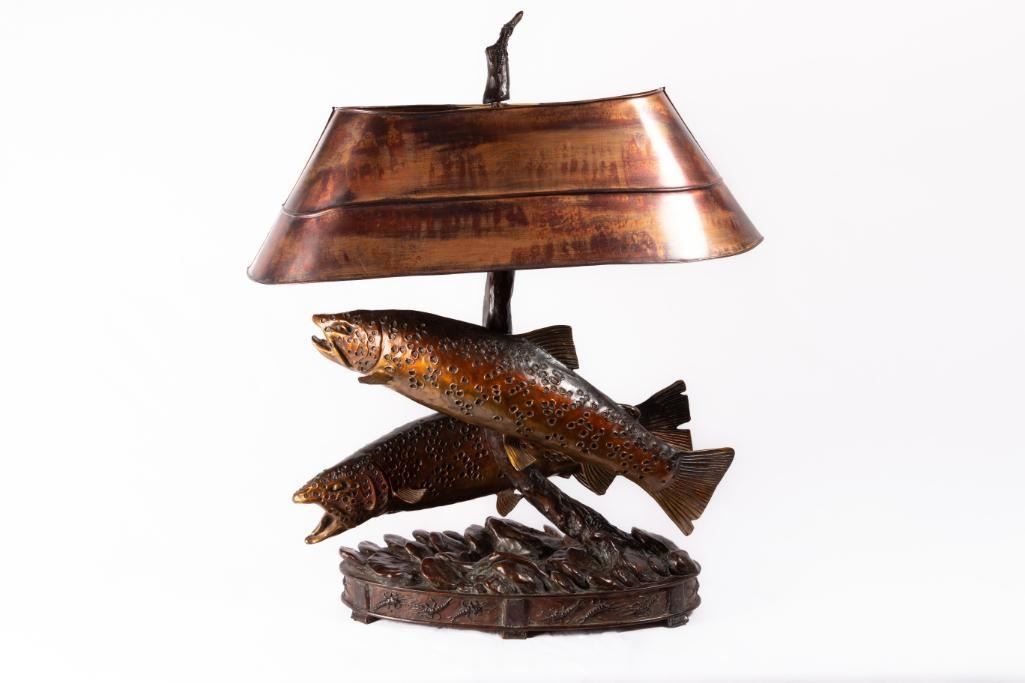 George Northup (1940 - ) Big Bugs in the Box Canyon 27" tall bronze lamp Inscribed: Northrup '05, 12/35 $2,000-3,000 Provenance: Private Collection, Conner, MT.
