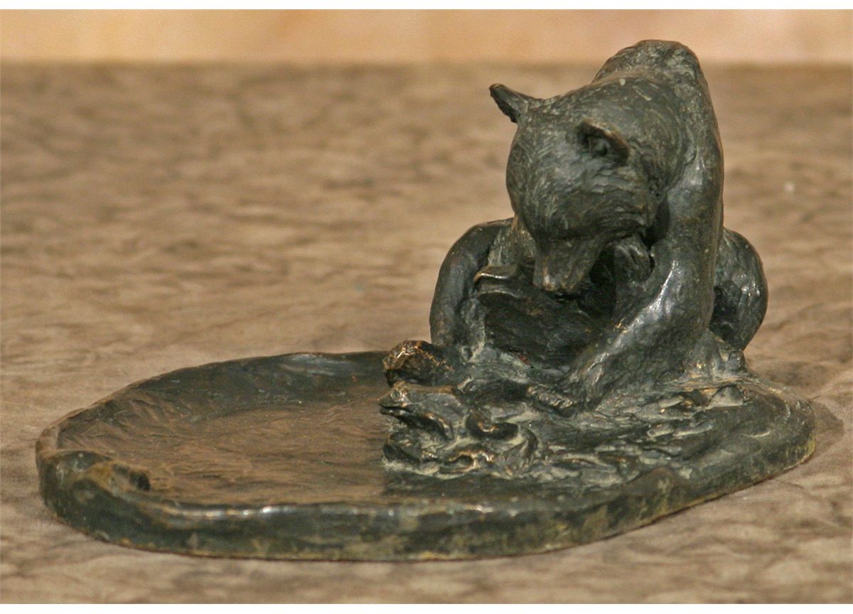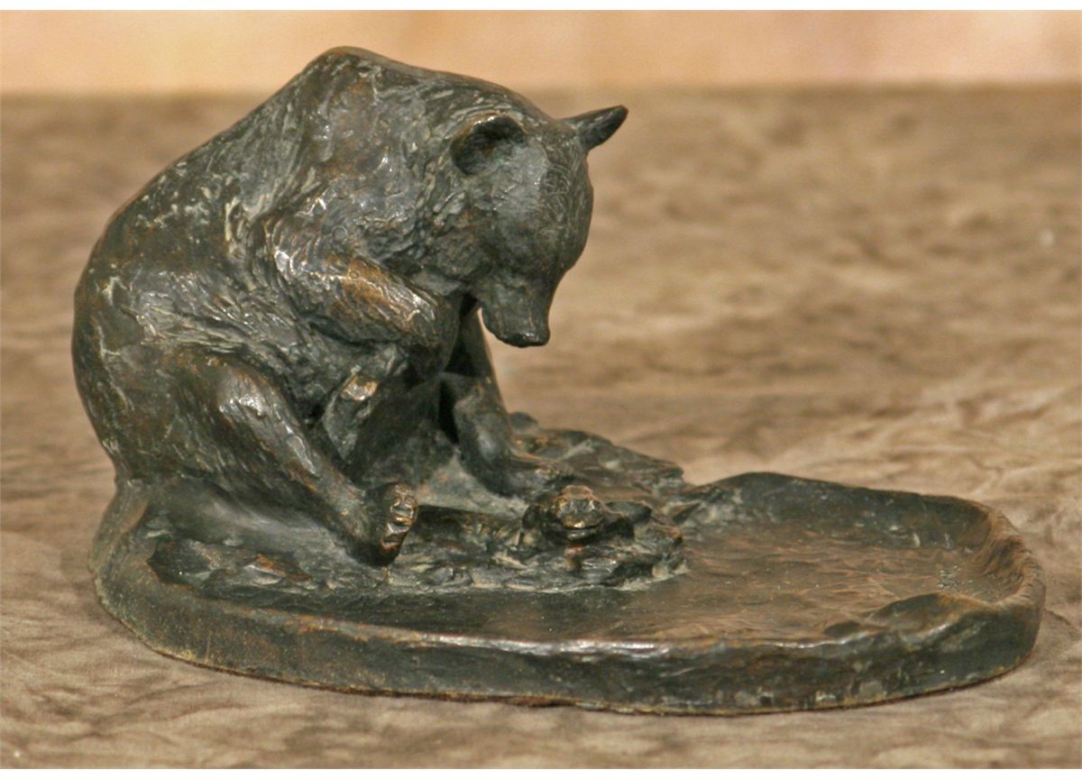 George Phippen (1915 - 1966) CA. Catching Frogs. 3.75" x 8" x 6" bronze ashtray. Inscribed: Phippen [cypher] No. 15 of 30. Condition reports can be viewed at www.marchinmontana.com/docs/2013CR.pdf