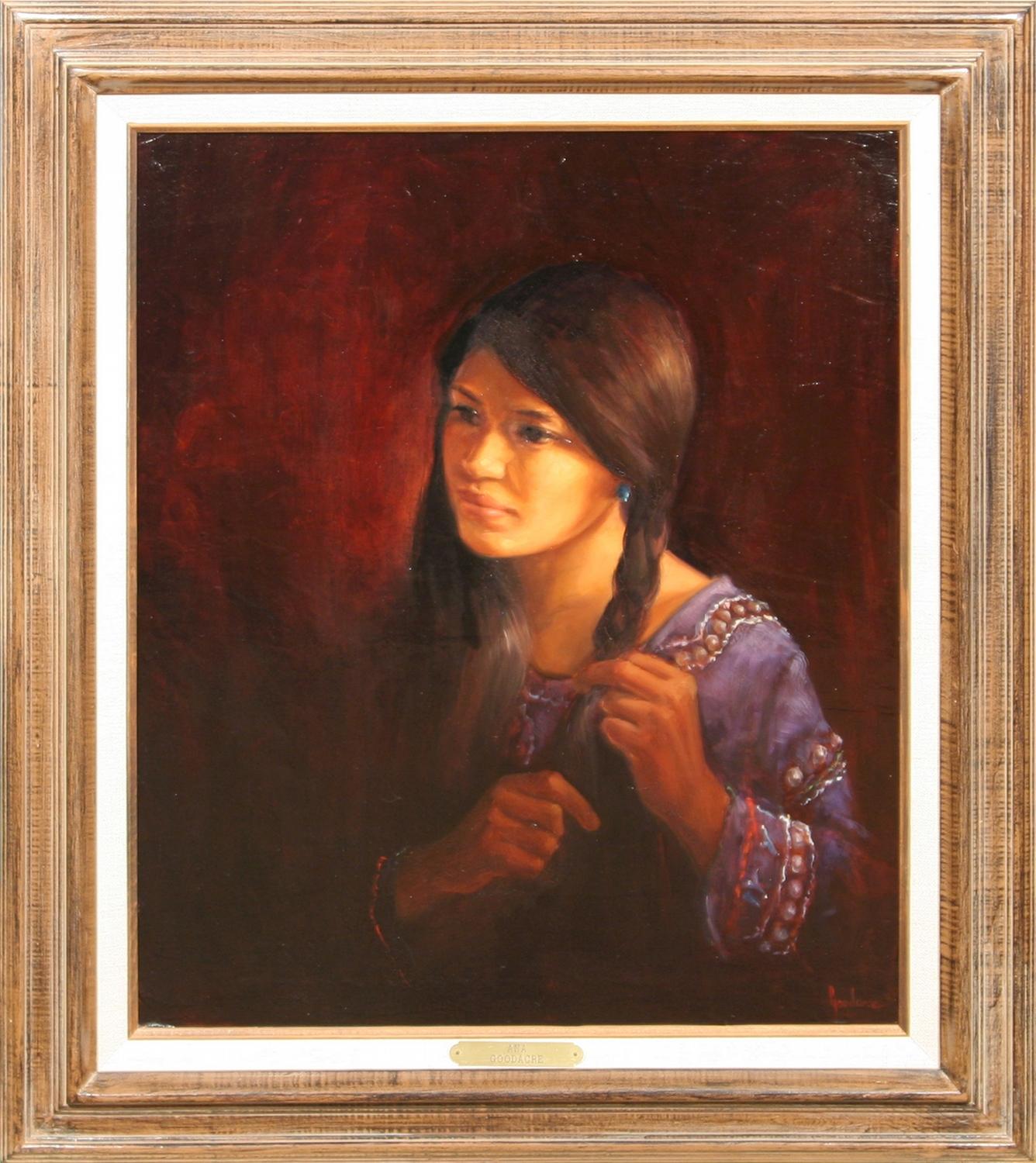 Glenna Goodacre (b. 1939). Ana. 24" x 20" oil on canvas. signed "Goodarse" lower right. (est $2,000-3,000). . Letter from Glenna explaining the signature accompanies this lot Condition Report: Black lights clean