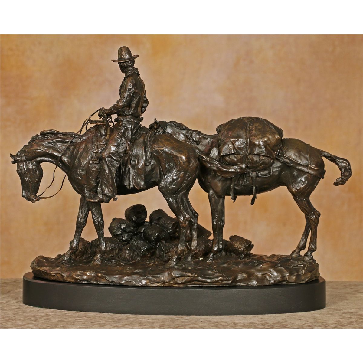 Grant Speed (1930 - 2011) CA. The End of the Open Range. 15" x 22" x 20" bronze. Inscribed: U G Speed © 1973 CA 5-30. Weight is 48 pounds - shipping estimate prior to bidding is advised.