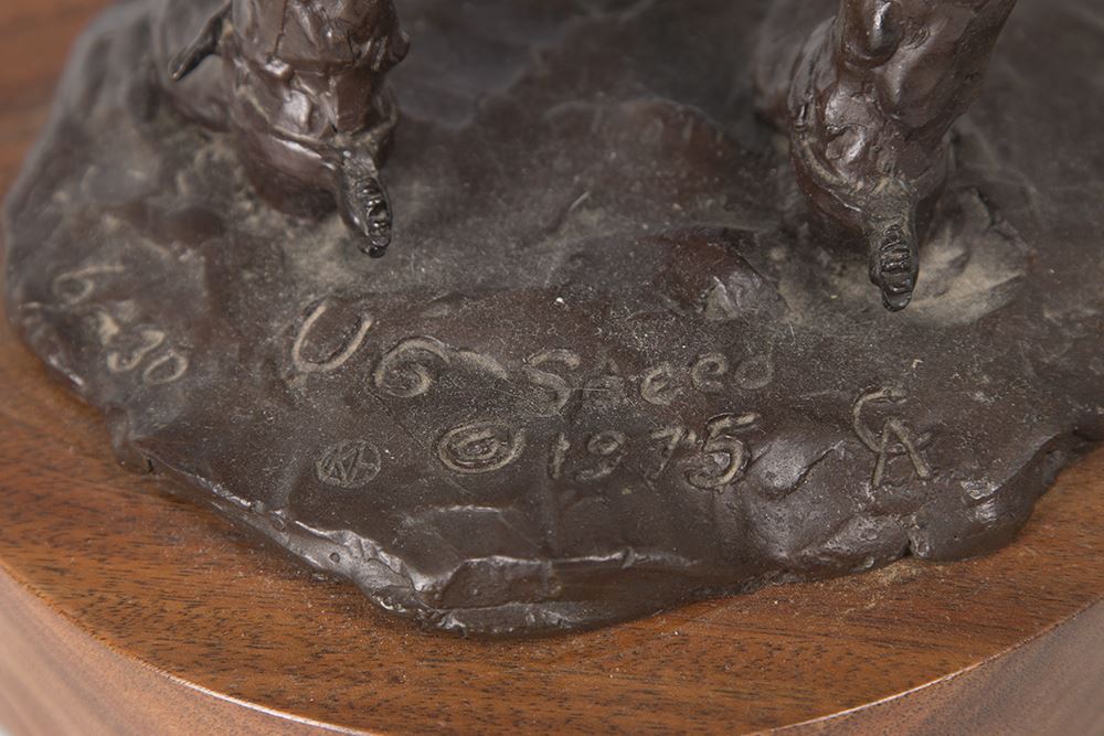 Grant Speed (1930-2011) (CA). Bought 'Em For Two, Sold 'Em for One. 14 ½" x 6" x 5" bronze. Inscribed: 6/30 UG Speed © 1975, CA.