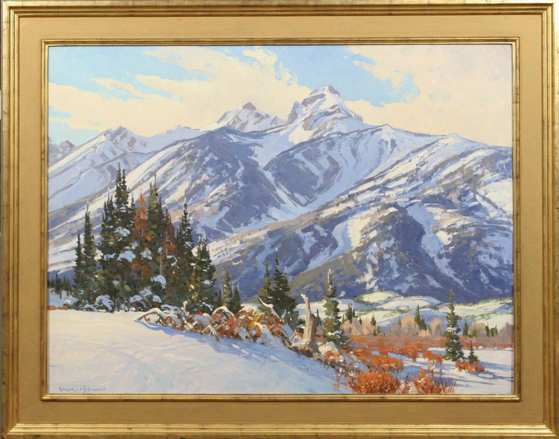 Greg McHuron (1945 - ). Blanketed. 30" x 40" oil on canvas. Signed lower left: Gregory I. McHuron [bird] ©. Provenance: Zoo Montana, Billings, MT. Condition reports can be viewed at www.marchinmontana.com/docs/2013CR.pdf