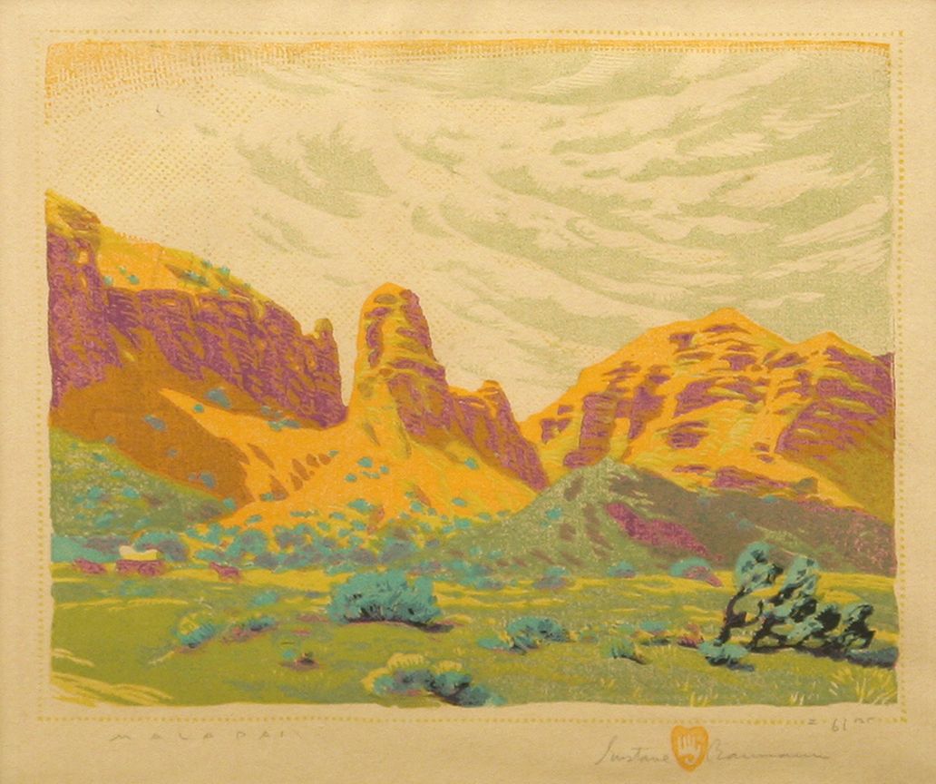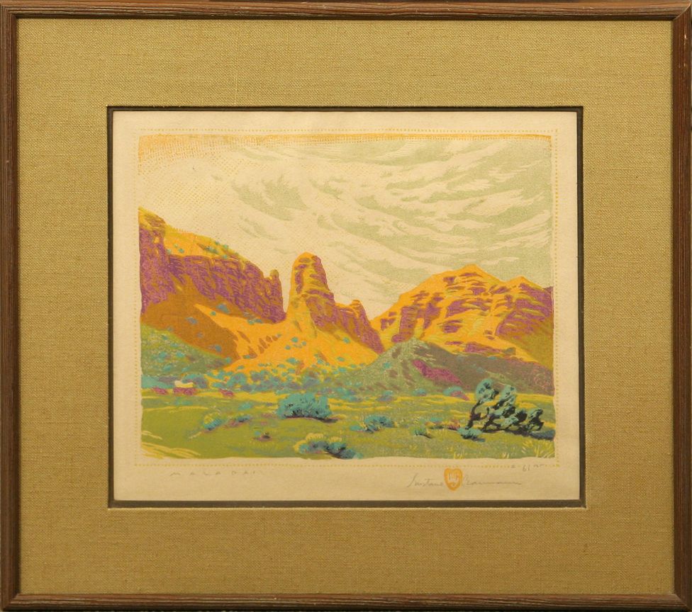 Gustave Baumann (1881 - 1971). Malapai. 11" x 12 ½" woodblock. Pencil signed lower right: Gustave Baumann # 65 125. Titled lower left. Condition reports can be viewed at www.marchinmontana.com/docs/2013CR.pdf