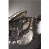 H.H. Heiser Silver Mounted Parade Saddle, Model #300. A rare saddle, which was pictured in the Heiser catalogs of the 1940s. It was named "The OLD MONTE-REY!" This model cost $1,250.00 to make in the 40s. Includes a massive amount of sterling silver decorations and beautiful 29" long tapaderos with gold horesheads. Bridle and breast collar included. Large Mexican-style horn.
