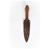 12.25" overall. Forged steel blade with fancy handle from rhinoceros horn. An unusual dag blade form. Handle mounting strategy is classic Sheffield - not for cutlery, but for tools. This piece is consistent with hand dag production as most dag blades were produced not by cutlers, but by tool makers. Likely Western Great Lakes. Circa 1850.