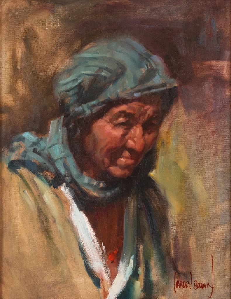 Harley Brown (1939 - ) Manuelita 18" x 16" oil on canvas Signed lower right $900-1,200 Provenance: Ex. Harley Brown Collection.