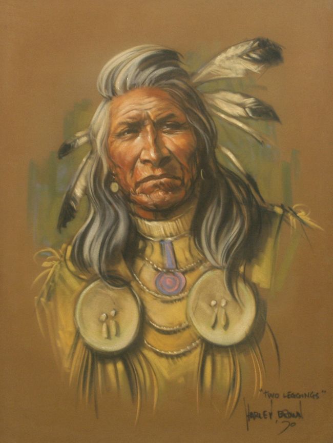 Harley Brown (1939 - ) CA. Two Leggings. 24" x 18" pastel. Signed lower right: "TWO LEGGINGS", HARLEY BROWN 70. Condition reports can be viewed at www.marchinmontana.com/docs/2013CR.pdf